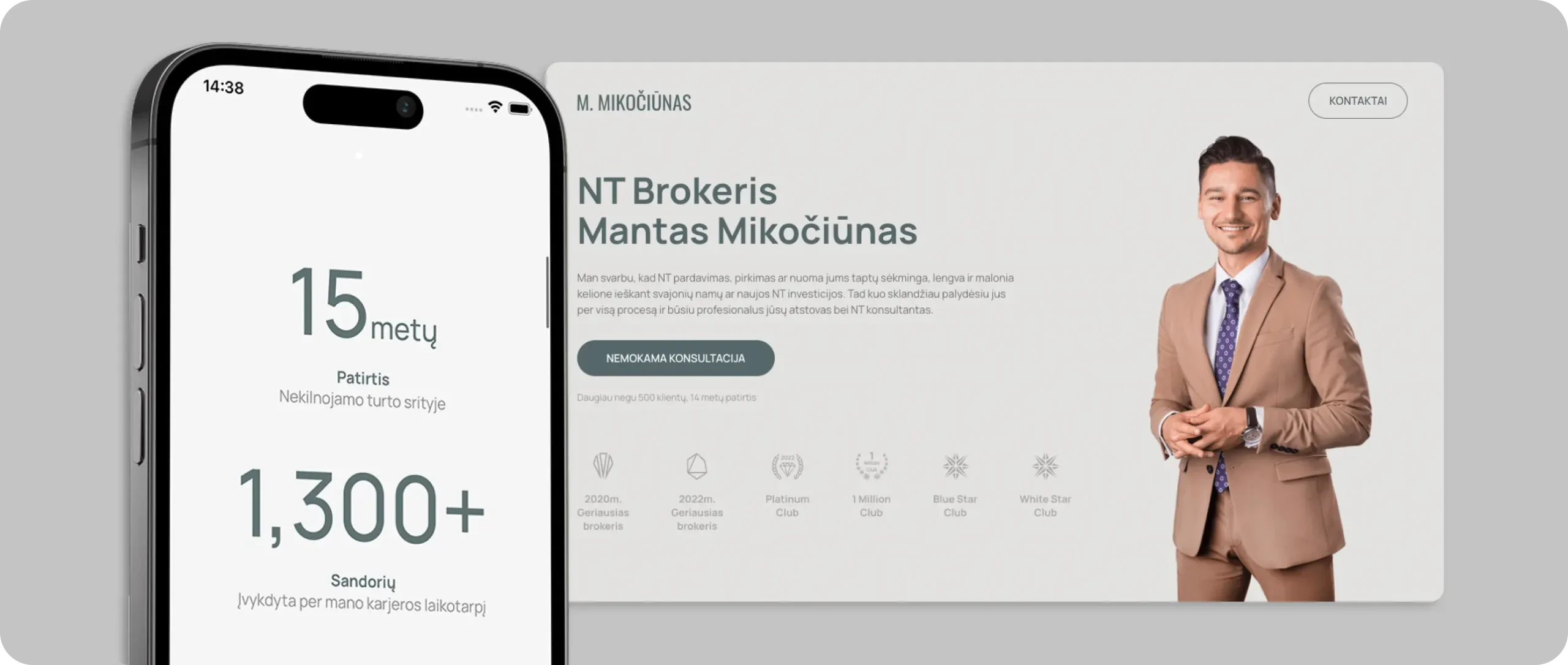 Sukurtas solidus vizualinis identitetas, pabrėžiantis profesionalumą ir pasitikėjimą. Dizainas orientuotas į NT brokerio paslaugų pristatymą ir autoritetą rinkoje.