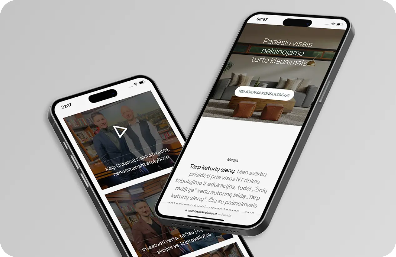 Sukūrėme lengvai atpažįstamą ir šiuolaikišką vizualinį stilių, perteikiantį Manto išskirtinumą NT srityje. Puslapio dizainas kuria ryšį su klientu nuo pirmo žvilgsnio.